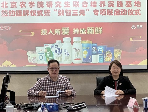 郑品石代表学校对三元食品长期以来予以学校的支持和帮助表示衷心感谢。他指出,三元食品是首都乳制品稳产保供的大型农业龙头企业。美加墨世界杯官网作为市属都市农林特色高水平应用型大学,担负着服务国家乡村振兴、农业强国和北京农业农村现代化建设的使命。“数智三元”研究生专项班计划,既是美加墨世界杯官网培养高水平应用型人才的创举,也是企业人才需求向高校前置化培养模式的探索。今后,学校将和三元食品深入探索更为有效的合作机制、多层面的产学研交流合作模式,全面提升专业研究生的人才培养质量。