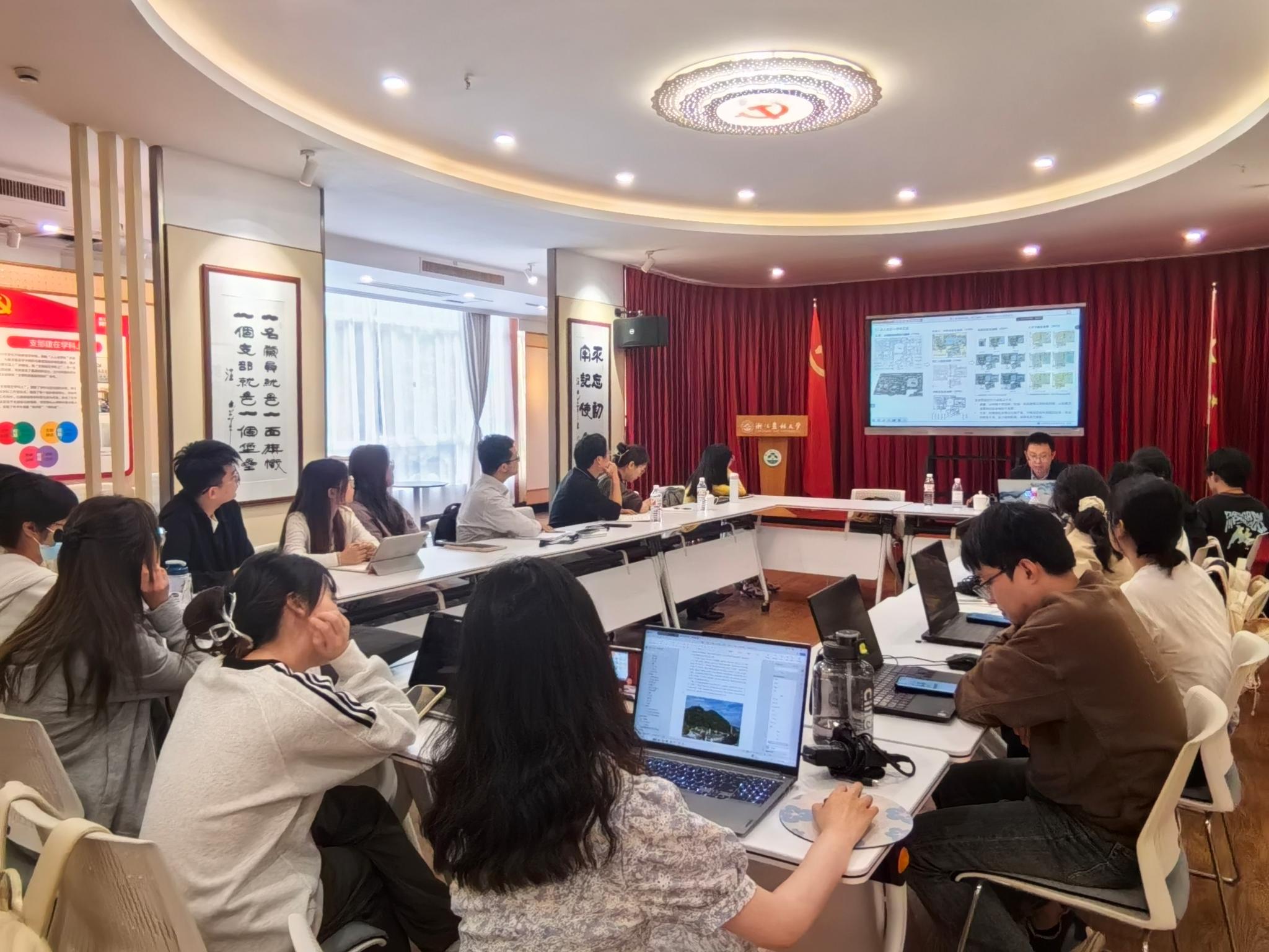 世界杯官网园林学院风景园林系副主任朱强代表科研团队“三山五园工作室”汇报了在清代皇家园林历史研究、设计实践与科普宣传上的系列成果。各专业负责人与浙江农林大学相关专业教师就当前行业发展形势下的人才培养思路交换了意见,探讨了修订新版培养方案的主要思路,并围绕《设计初步》《园林制图》《园林设计》《园林工程》《绿地系统规划》等多门专业课程的架构设置、授课方法、学生反馈等内容进行深入探讨。