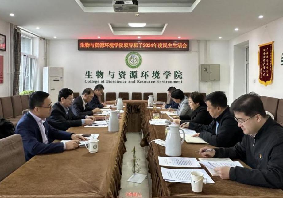 1月24日,生物与资源环境学院党委召开2024年度处级党员领导干部民主生活会。会议紧扣主题,紧密结合思想、作风和工作实际,认真查摆、深刻剖析,严肃认真开展批评和自我批评。学校党委副书记、校长段留生,党委副书记仲丛生到会指导。会议由学院党委书记袁中立主持,全体班子成员参加。