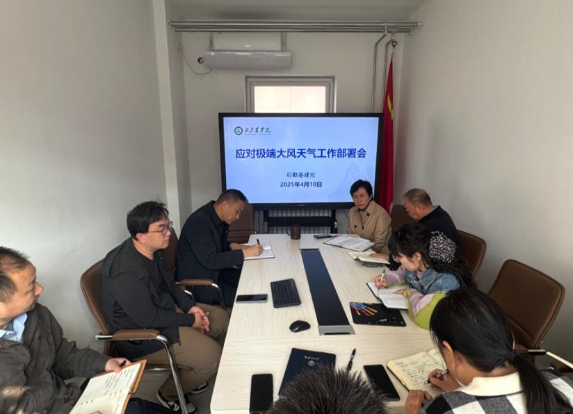 后勤基建处召开工作部署会,传达教委、学校关于极端大风天气防范应对会议内容并开展工作部署。完善防风抢救应急预案,成立防范指挥部,处领导一线督导指挥,明确责任分工,加大防风工作力度,确保学校防风工作有序进行。