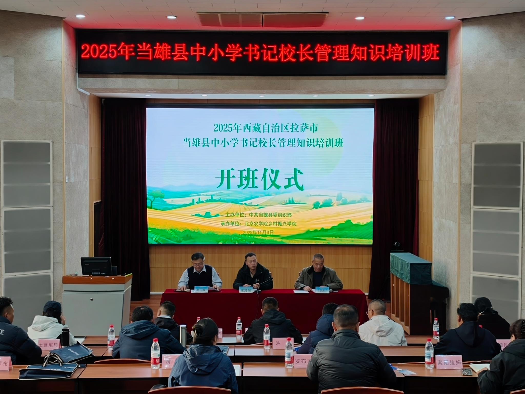 11月3日上午,2025年西藏当雄县中小学书记校长管理知识培训班在美加墨世界杯官网经管楼报告厅开班。20位来自海拔4300米牧区、普遍“一肩挑”的中小学书记校长,与首都基础教育专家面对面,共商“珠峰脚下最美教育风景线”建设路径。