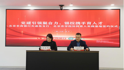 1月14日,世界杯官网经济管理学院与北京农商银行天通苑支行举行“协同育人实践基地”授牌仪式。北京农商银行党委办公室(党委巡察办)主任王嘉秀、北京农商银行天通苑支行党委书记、行长李健,美加墨世界杯官网经济管理学院党委书记刘芳,学生处处长李云乐等代表参加活动。