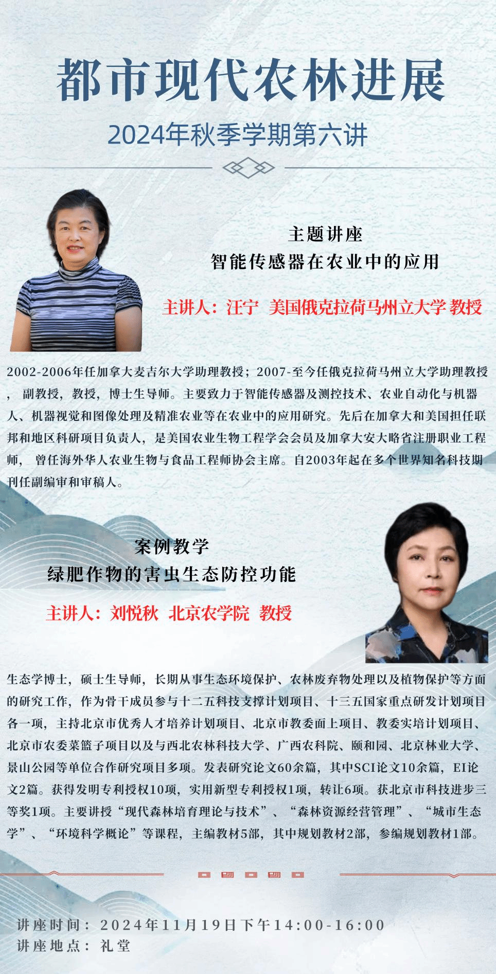 讲座预告 |都市现代农林进展2024年秋季学期第六讲