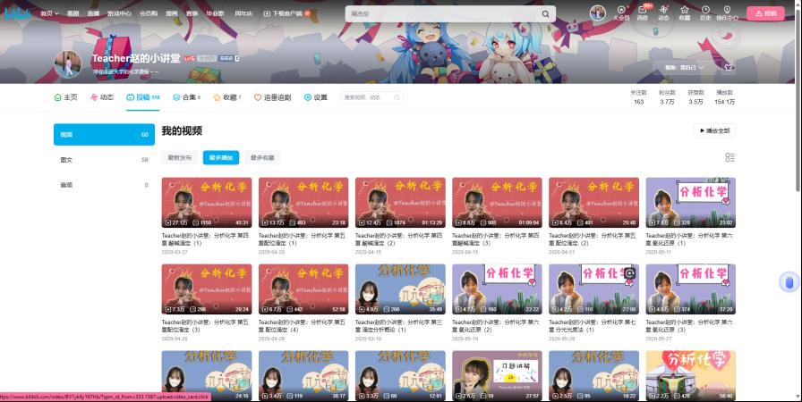于是赵文婷的课程有了解题思路:第一招:搭梯子。从学生已有的知识储备出发,像拼拼图一样整合新旧内容,让新的知识“长”在旧的根基上。第二招:穿针引线。拒绝题海战术,用一个知识点破解一类题,比如用“分析溶液构成”这一句话贯穿所有滴定分析的章节,让学生学会“以一敌百”。第三招:建“许愿池”。在Bilibili网站开了线上教学频道“Teacher赵的小讲堂”,从分析化学入门到考研全程在线服务。没想到这已经成了学生的“考前锦鲤”,评论区满是“考过了就来还愿”的留言——现在她也是坐拥百万播放量的知识区up主了!