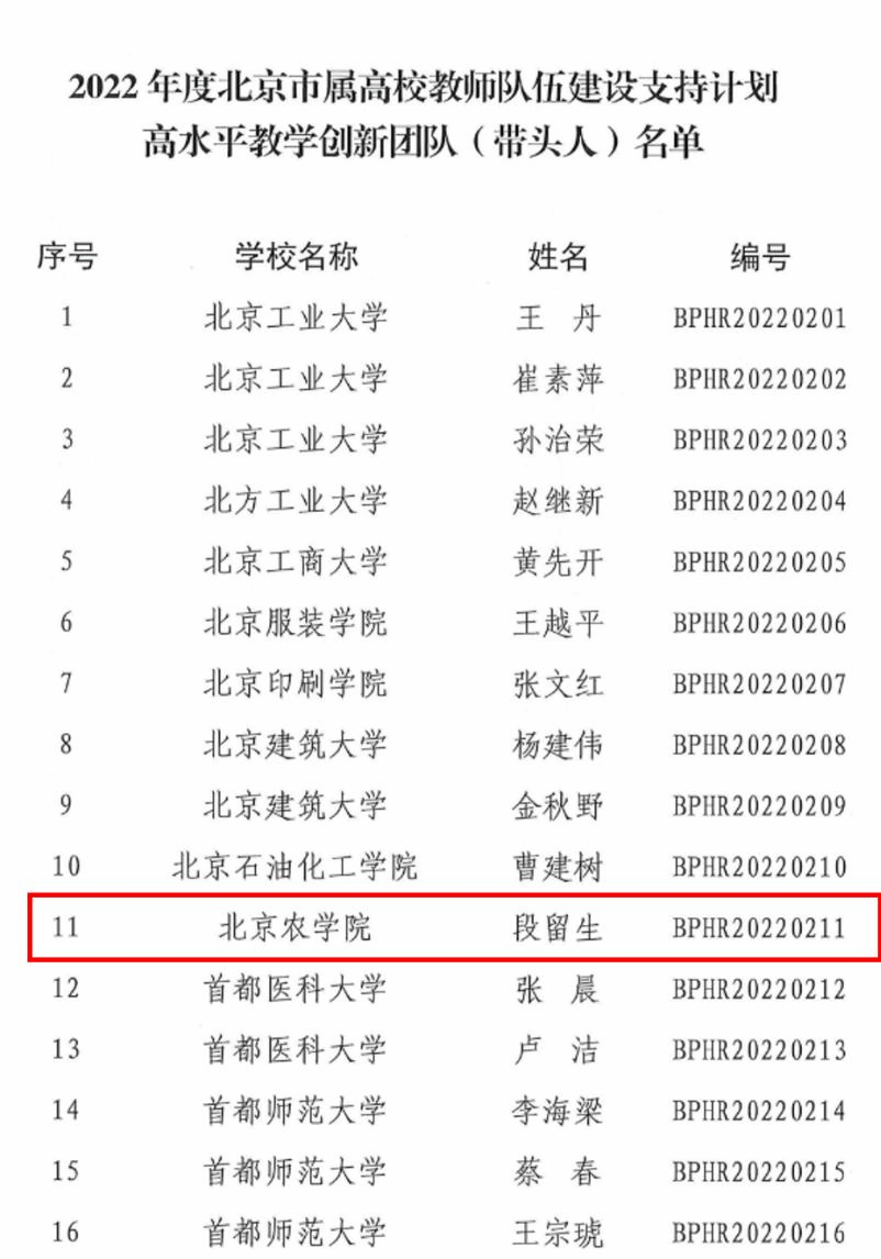 近日,北京市教育委员会公布2022年度北京市属高校教师队伍建设支持计划评审结果,世界杯官网获得8项立项资助,其中段留生教授团队获得高水平教学创新团队立项资助、7名教师获得优秀青年人才立项资助。