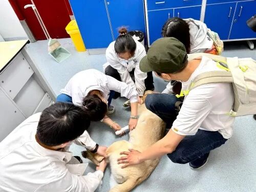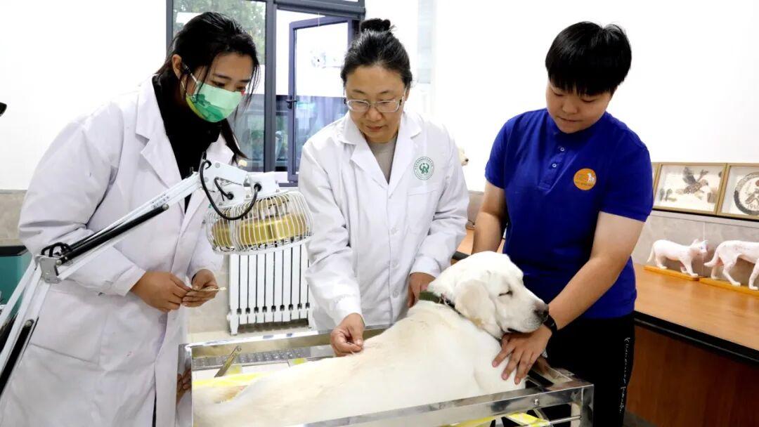 团队连续两年为全市在役导盲犬提供全面免费体检。有位视障朋友紧紧握着团队教师的手说:“太感谢了!有了这次体检,我带着狗狗出门才真的踏实。”