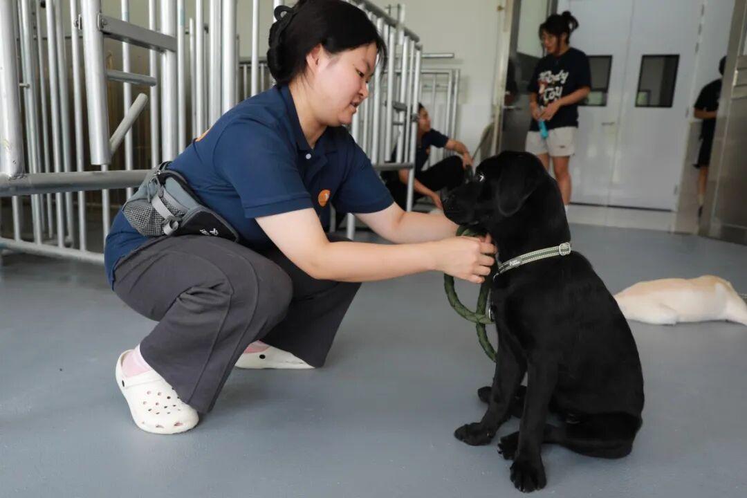 每一只导盲犬的成长都有高水平的训导团队全程护航,以及中西结合医疗团队的全程守护。在国际导盲犬联盟认证的训导师带领下,多名训导师通过数千小时的耐心训练,把活泼好动的幼犬,一步步训练成视障人士安心可靠的“出行伙伴”。