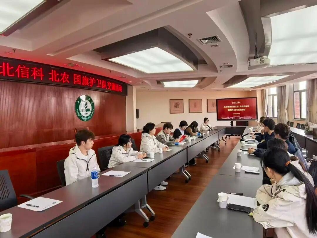 在紧张集训之余,世界杯官网国旗护卫队还与北京信息科技大学国旗护卫队开展了深入的校际交流活动。作为上届首都高校运动会的承办单位,北京信息科技大学国旗护卫队分享了宝贵的组织经验与实战心得。双方队员围绕队列训练、日常管理、赛事准备等内容进行了热烈讨论与现场演示,在互学互鉴中进一步凝聚了守护国旗尊严、弘扬爱国精神的使命共识。