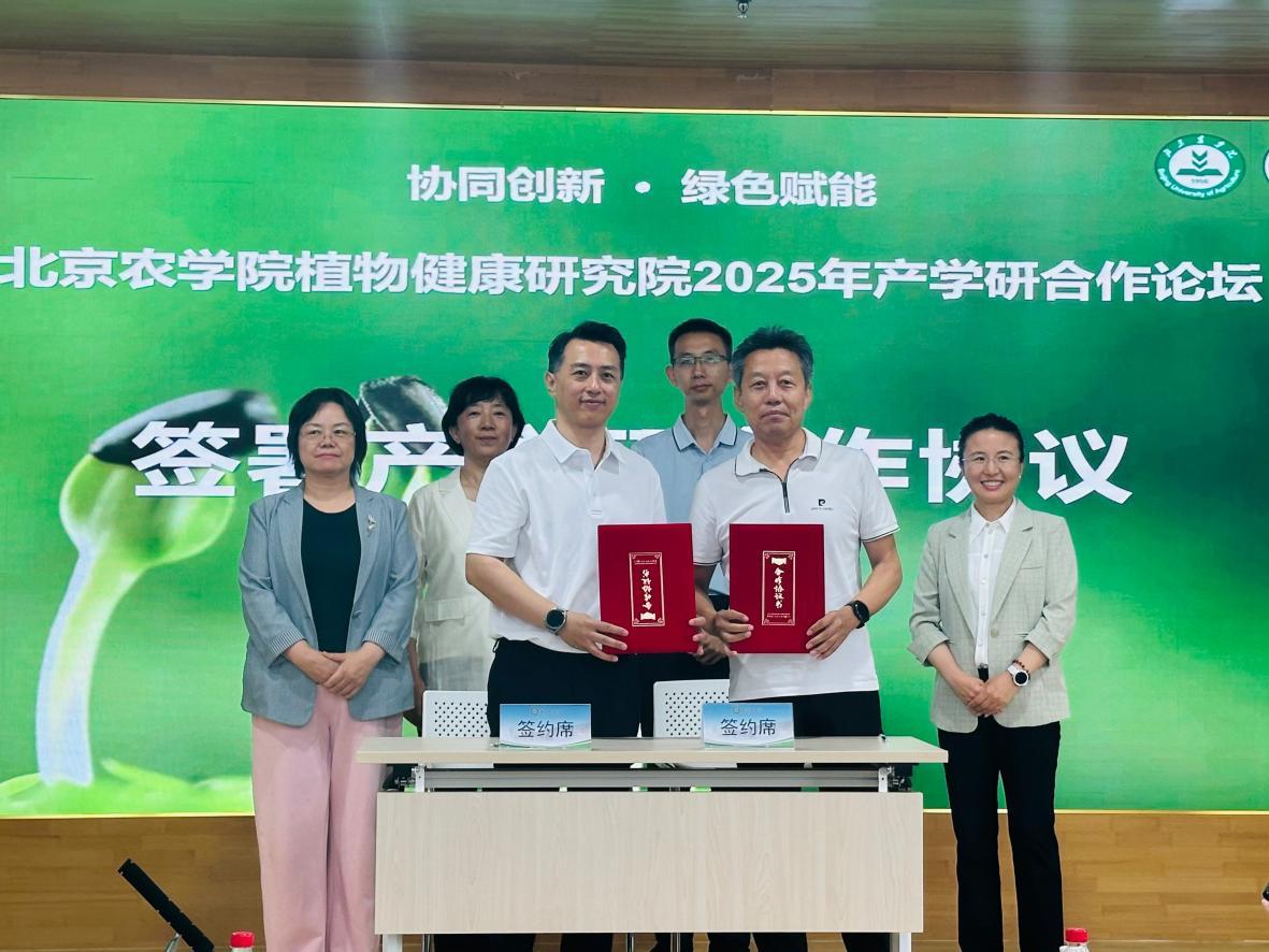 论坛期间,植物健康研究院重点推介了15项最新技术成果,十余家企业代表现场发布了产学研技术需求。在与会嘉宾见证下,植物健康研究院与北京清源保生物科技有限公司、中农可信(河北)农业技术有限公司现场签署了产学研合作协议,标志着校企合作迈向新阶段。企业技术需求发布环节精准对接科研方向,为后续合作奠定基础。