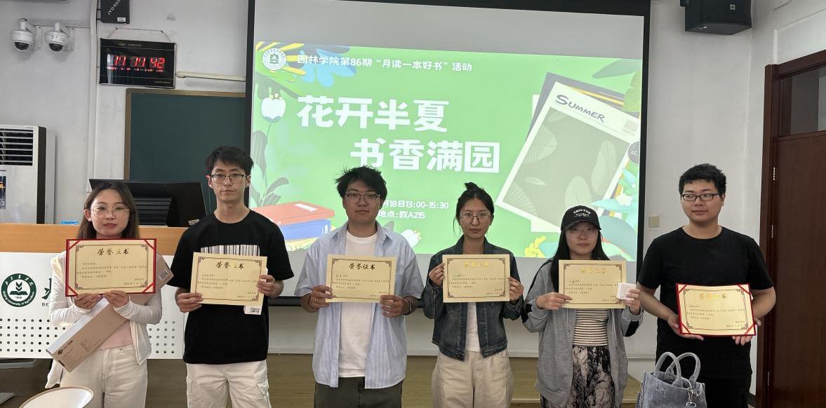 2025年6月18日,园林学院第86期“月读一本好书”活动在教A 215顺利举行,本期的主题是“花开半夏,书香满园”。夏日炽热,柳丝轻舞,六月的阳光正以最热烈的笔触,在树荫间勾勒着翠绿的篇章。我们相聚在这盛夏炎炎的时光里,愿每位书友都能寻得内心的清凉之地。活动由园林学院研究生会学术部王娅力主持,园林学院2024级研究生积极参与,大家共品书韵,在炎炎夏日中一同收获知识与乐趣,为本学年最后一次读书分享会画上圆满的句号。