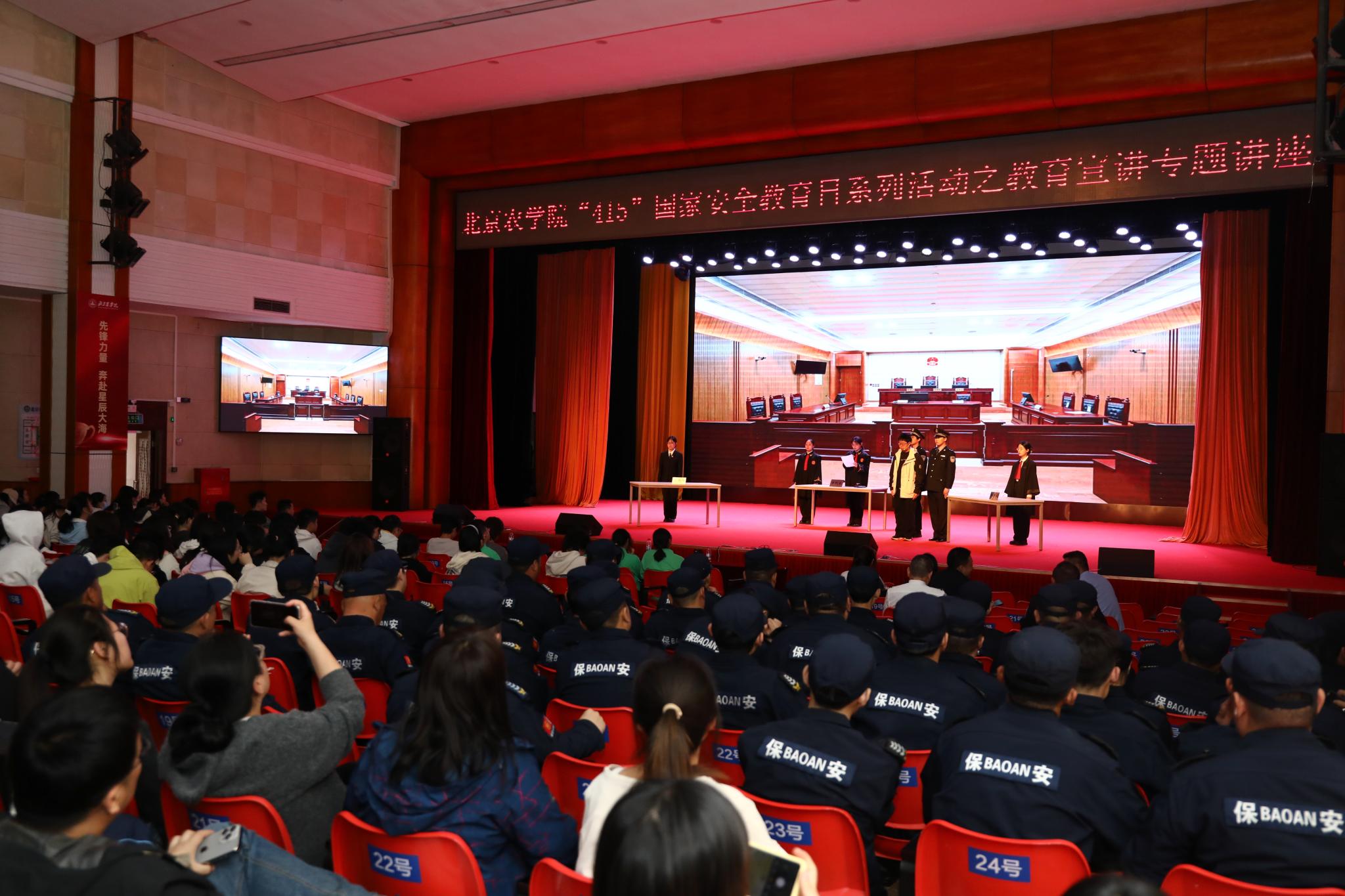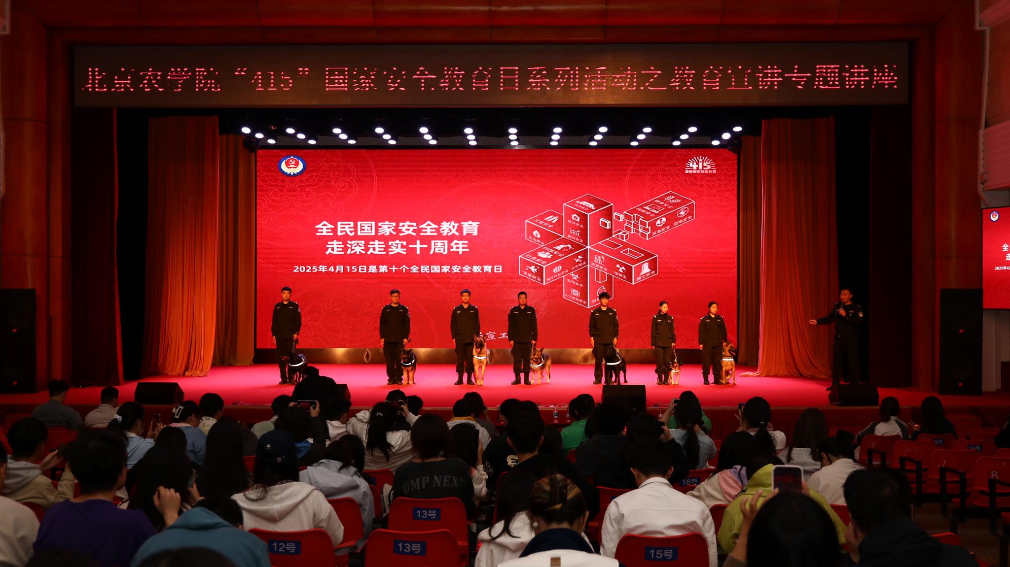 2025年是习近平总书记提出总体国家安全观10周年,为迎接即将到来的第十个全民国家安全教育日,4月9日,学校安稳处联合北京市公安局公交总队在学校礼堂和科技综合楼前广场举办了一场形式多样、内容丰富的国家安全教育主题宣传活动。活动以“全民国家安全教育 走深走实十周年”为核心,通过情景剧演绎、警犬互动展示、专家讲座、校卫队应急处突训练等多元化形式,将国家安全知识、防间反诈融入沉浸式体验,为全校师生带来一堂生动的安全教育课。
