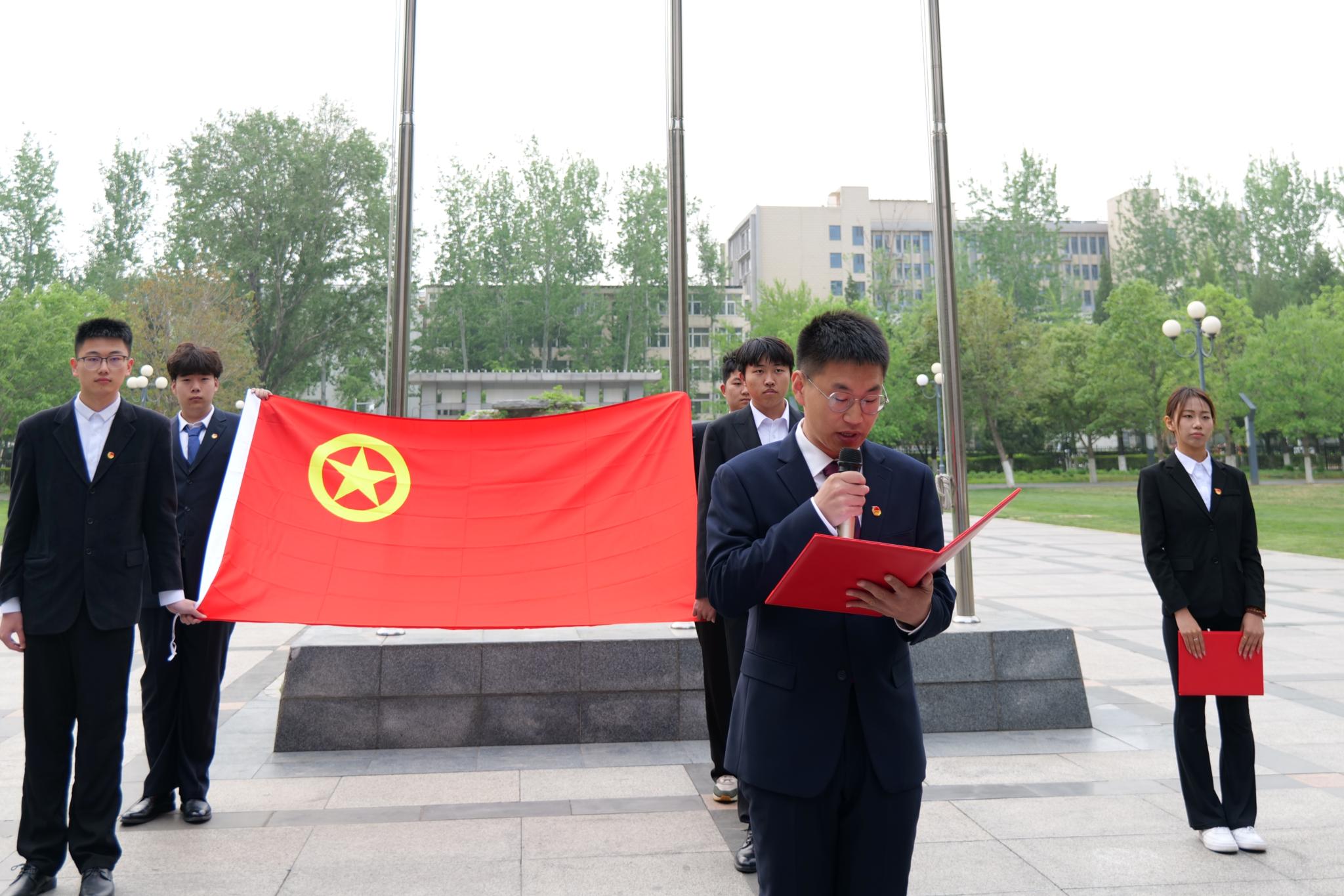 为贯彻落实习近平总书记关于青年工作的重要思想,切实加强共青团员政治认同,引导广大团员青年传承红色基因、筑牢信仰根基。4月21日上午7点,文法与城乡发展学院团委在行政楼前举行了“红旗映初心 誓词砺使命”主题团日活动,校团委书记张卿、文发学院学生工作负责人周旭平和全体辅导员、院团委学生骨干、2024年新发展团员、团员代表共同参加。