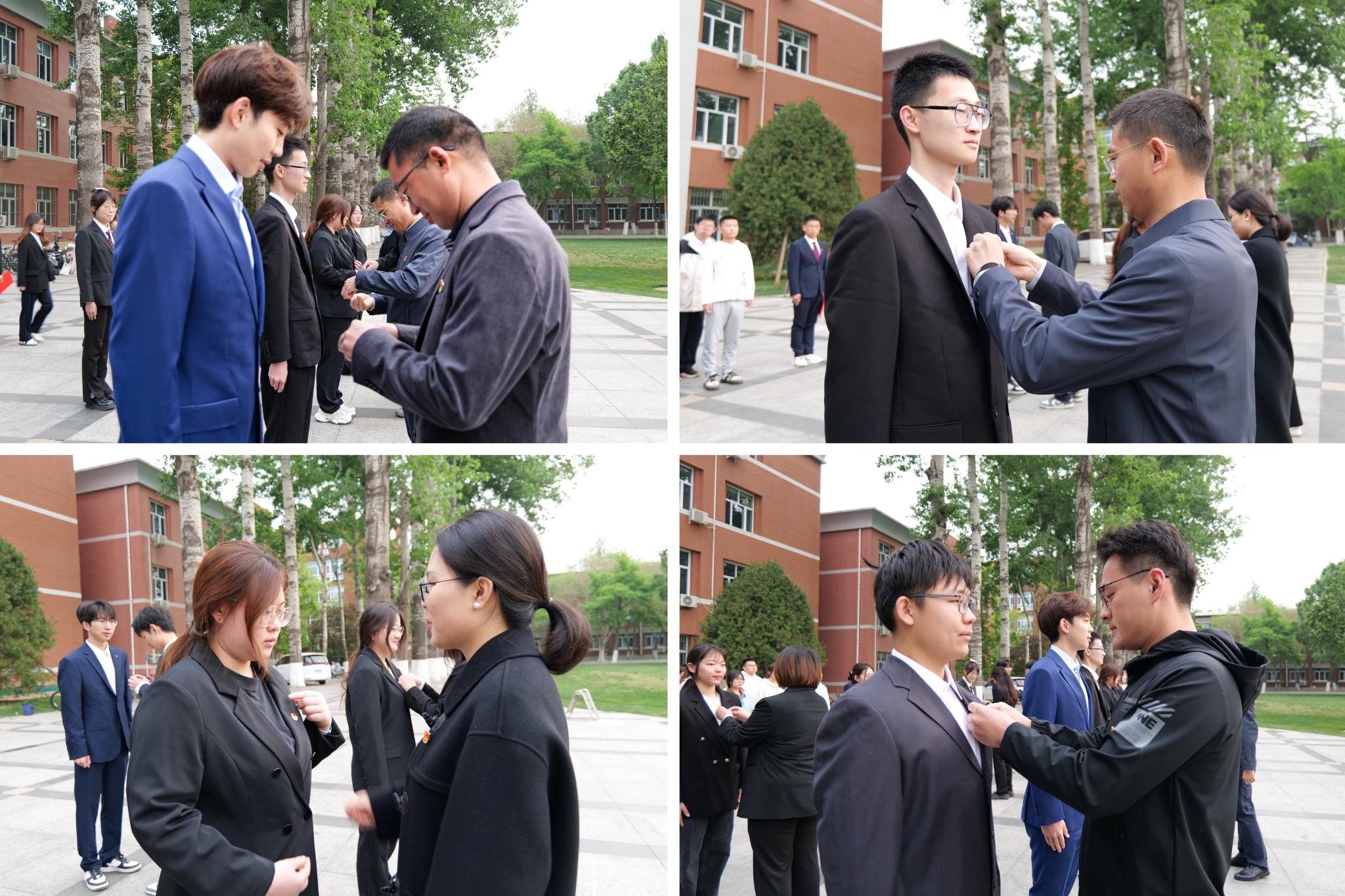 升旗仪式结束后,院团委学生副书记赵正阳宣读了2024年新发展团员名单。张卿、周旭平、辅导员、学生党员代表为新发展团员佩戴团徽。