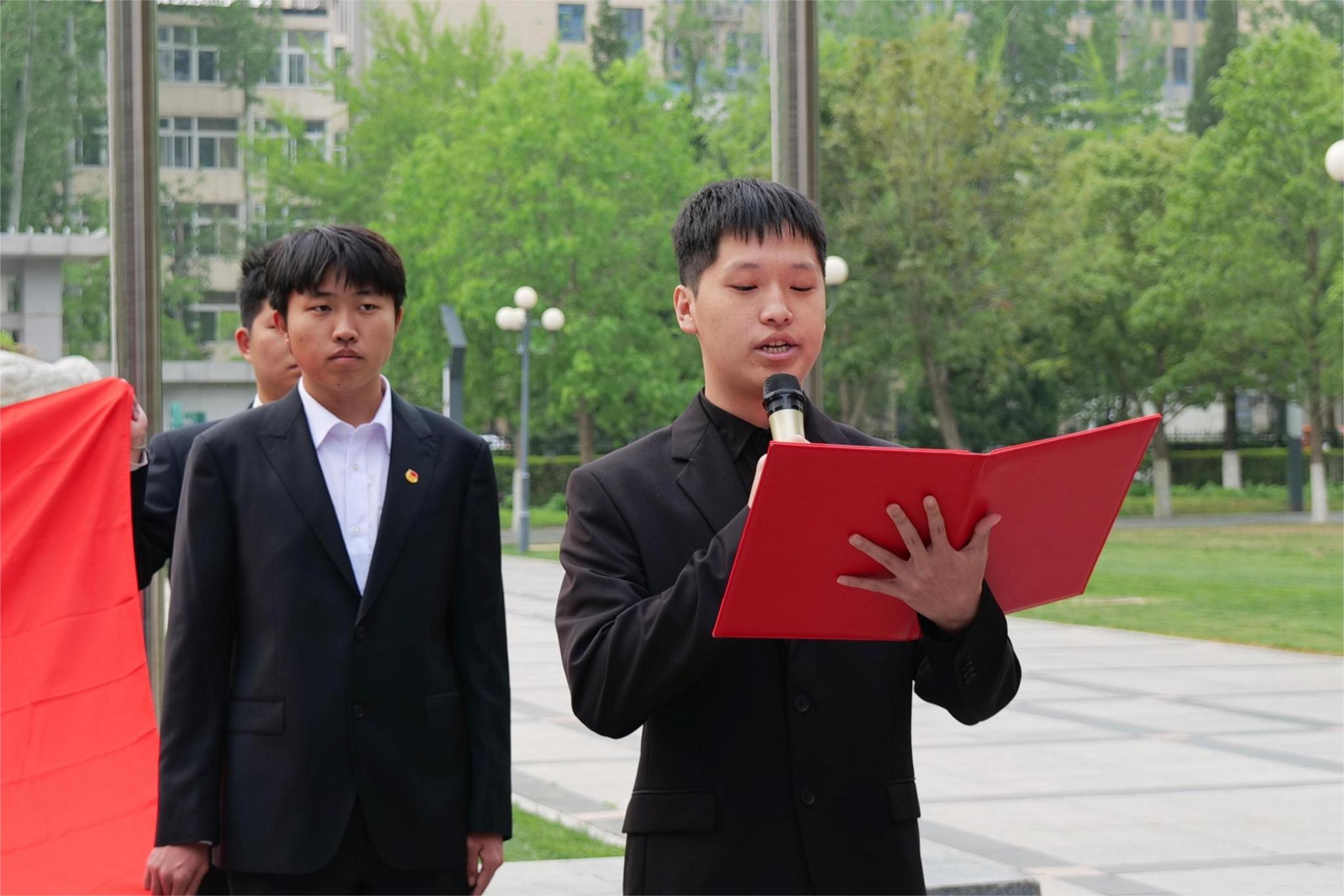 宣誓结束后,朱世杰代表老团员,以“青春守誓,让信念镌刻五四”为主题进行发言,他围绕新时代团员青年的使命与责任担当,号召全体团员要牢记党的嘱托,做到“党有号召、团有行动”,让青春在祖国和人民最需要的地方绽放绚丽之花。