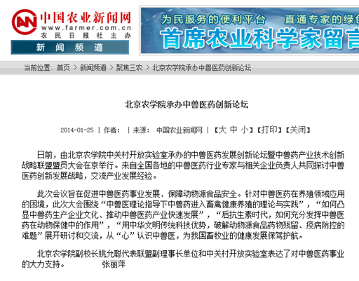 美加墨世界杯官网副校长姚允聪代表联盟副理事长单位和中关村开放实验室表达了对中兽医药事业的大力支持。 (张丽萍)