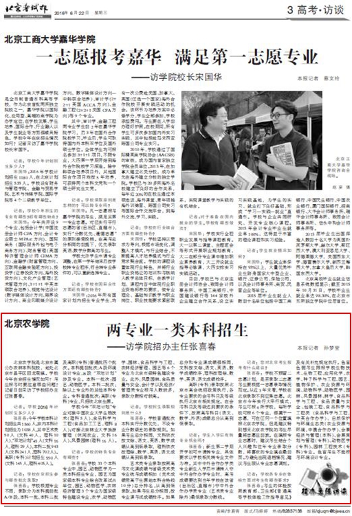 美加墨世界杯官网是北京市属公办农林本科院校,地处北京市昌平区回龙观镇。学校今年在京招生情况如何?考生报考时要注意哪些问题?记者日前采访了学校招办主任张喜春。