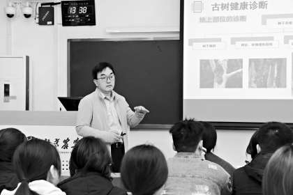 “每上一节理论课,后面就要紧跟着实践练习。比如,我会教大家树木健康诊疗知识。随后,学生们就要前往校园或者校外的公园里开展实践,选一棵树,通过测树高、冠幅等,为树木开具‘体检’报告单。”崔金腾说,课程结尾还会开展一次综合性实习,考查学生整体运用所学知识处理树木健康问题的能力。