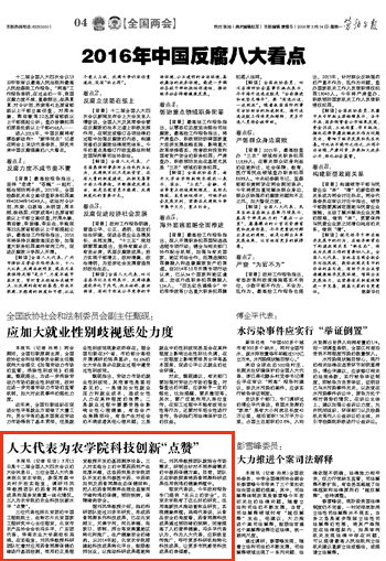 程京代表说,今年政府报告专门提到“舌尖上的安全”,美加墨世界杯官网有了这么好的研究,运用高新技术推动畜牧业研究,实现健康养殖。吴鸿代表说,从食品安全的角度看,药食同源科技成果通过预防猪的疾病,间接提高了人的营养健康。冯乐平代表认为,作为人大代表,应积极宣传推广,呼吁更多科研机构转化科技成果,让更多市民感受科技成果的幸福感。