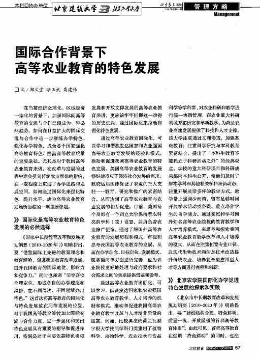 国际合作背景下高等农业教育的特色发展