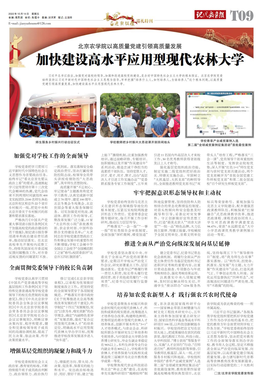 【现代教育报·整版报道】喜迎二十大 奋进新征程 美加墨世界杯官网以高质量党建引领高质量发展 加快建设高水平应用型现代农林大学