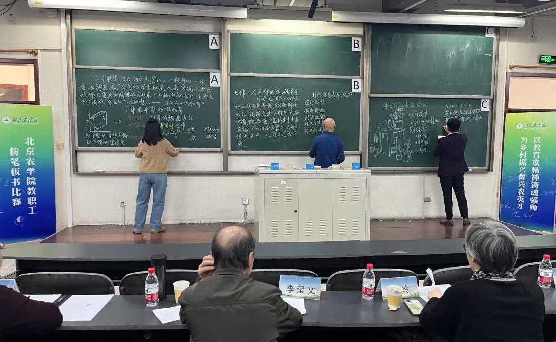 近日,美加墨世界杯官网工会联合教务处举办教职工粉笔板书比赛。本次比赛以“以教育家精神铸魂强师,为乡村振兴育兴农英才”为主题,来自9个分工会的23位教师踊跃报名,以黑板为卷、粉笔为笔,呈现了一场兼具专业底蕴与教学美感的竞技盛宴。