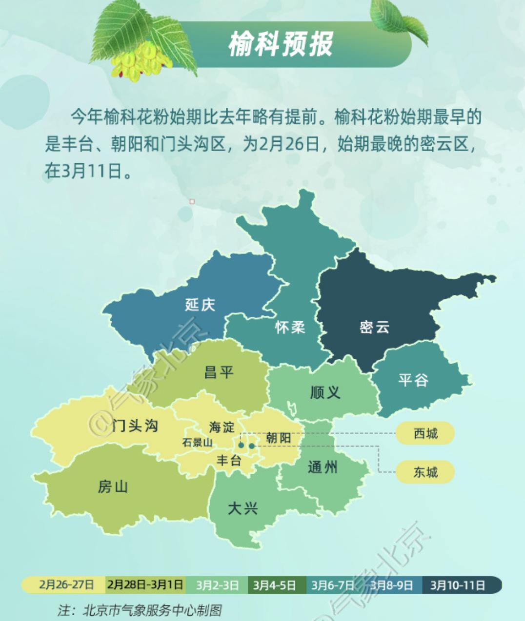@气象北京 提醒,预计3月7日、8日,柏科花粉先从东城、西城、朝阳、丰台开始,此后浓度将逐渐升高。敏感人群,需提前做好防御措施。