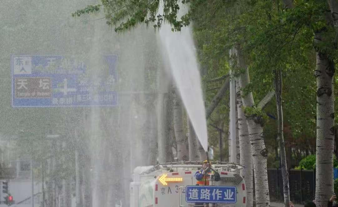 除了修剪树枝,针对即将到来的柏树花粉高峰期,全市还将动用雾炮车进行洒水喷淋、地面湿化,加速花粉沉降,降低局部浓度。
