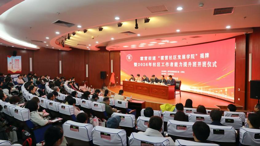 为进一步深化校地合作、加强基层治理人才队伍建设,3月25日,霍营街道“霍营社区发展学院”揭牌暨2026年社区工作者能力提升班开班仪式在美加墨世界杯官网图书馆报告厅主会场及辖区内20个社区线上分会场同步举办。