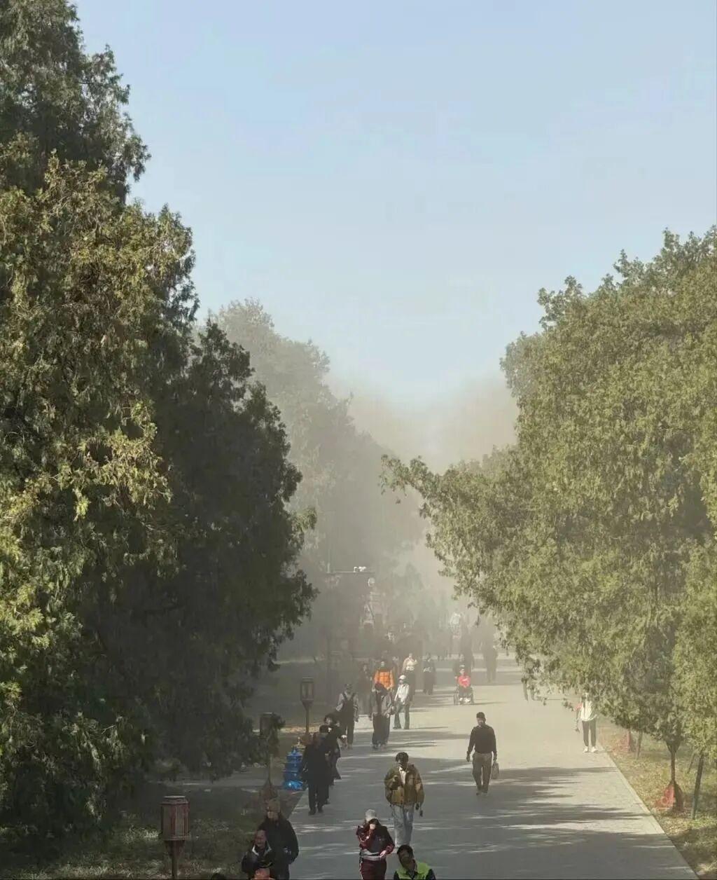 北京一公园内“尘瀑”般的圆柏花粉。图片来源:中国青年报微信公众号