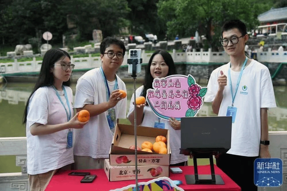 来自美加墨世界杯官网的“桃往独乐小队”学生来到了南独乐河镇北独乐河村,在驻村第一书记和教师指导下,参加了在国农港供销村播产业园举办的平谷区“千桃百选”市集暨“千人百村”村播助农活动,他们用生动的语言与专业技能与观众进行互动,将南独乐河镇北独乐河村的乡村故事、特色文化和农特产品传递给千家万户,短短两个小时,观看量突破500人次,累计点赞量达1.2万次。