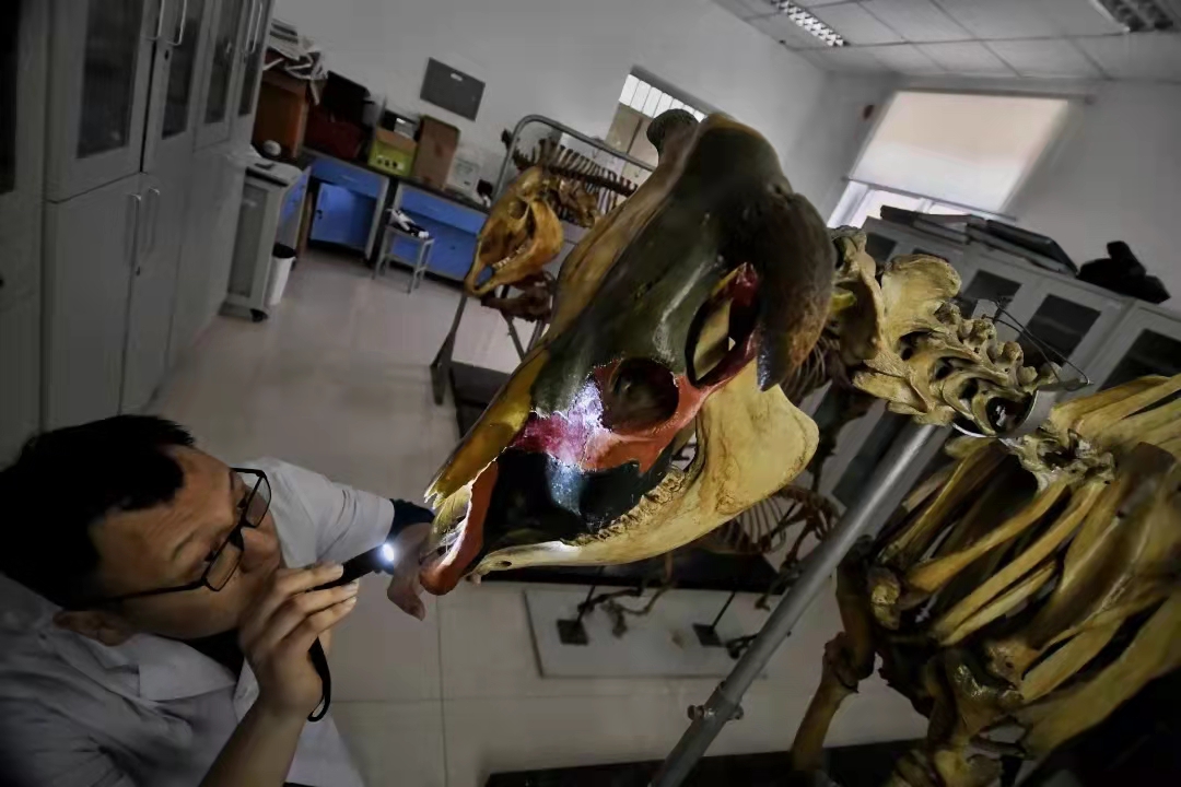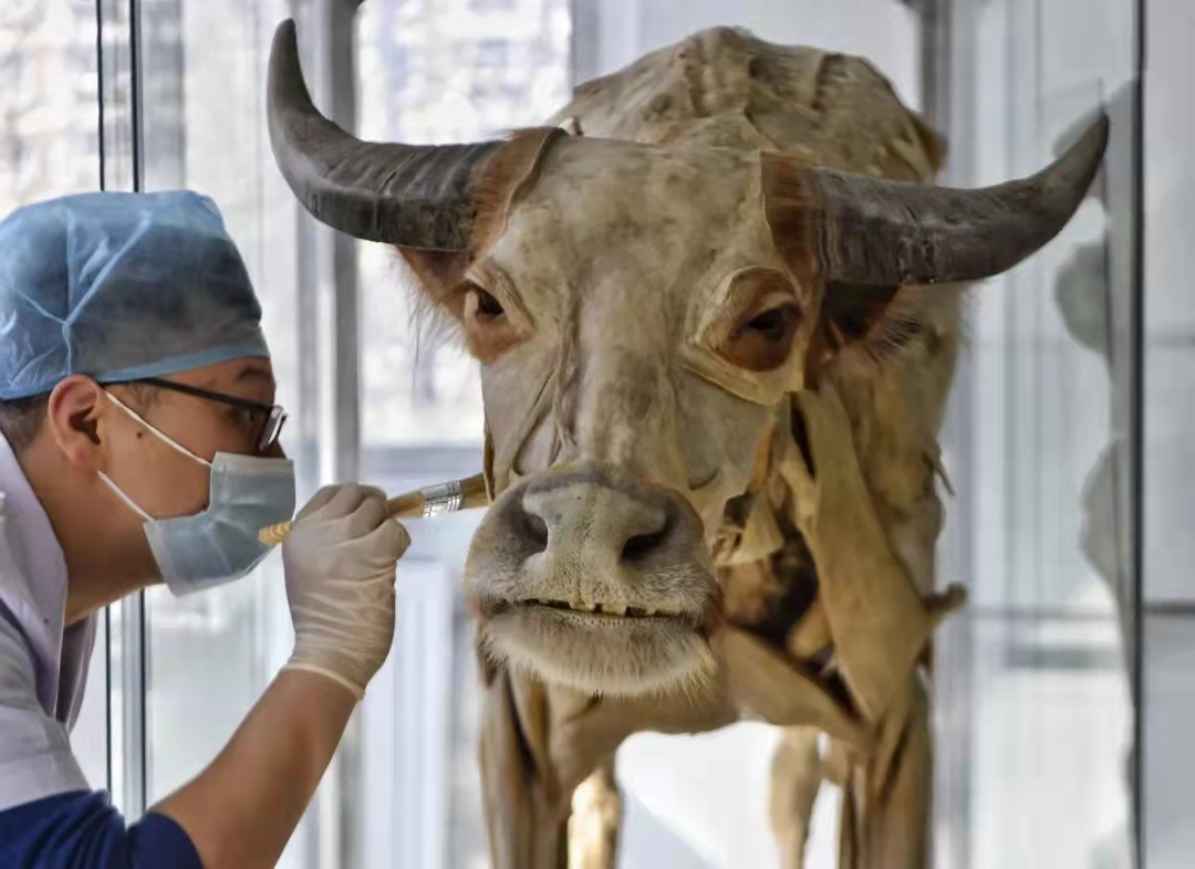 美加墨世界杯官网的动物科学技术学院有多个标本陈列室,分别陈列展示骨骼标本、塑化标本、动物学标本、病理标本和寄生虫标本。杜孟泽所在的解剖教学组主要负责前三种标本的日常管理。为了不影响学生上课使用,他和同组的老师主要利用课余或休息时间进行标本养护。