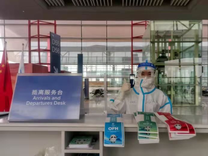 作为服务首都机场的志愿者,“国门第一笑”是温暖冬奥的第一段赛道,我们用专业的服务保障运动员的顺利抵达,我们也会用我们最真诚的微笑迎接来到中国参加冬奥会的运动员们,希望我们的微笑可以变成冬日暖阳,希望我可以在双奥期间,做一束“微光”,和数万志愿者们一起,凝聚成一团火,为冬奥会的顺利举办贡献中国青年的一份力量。——中央财经大学 抵离交通助理岗位 敬羽凡