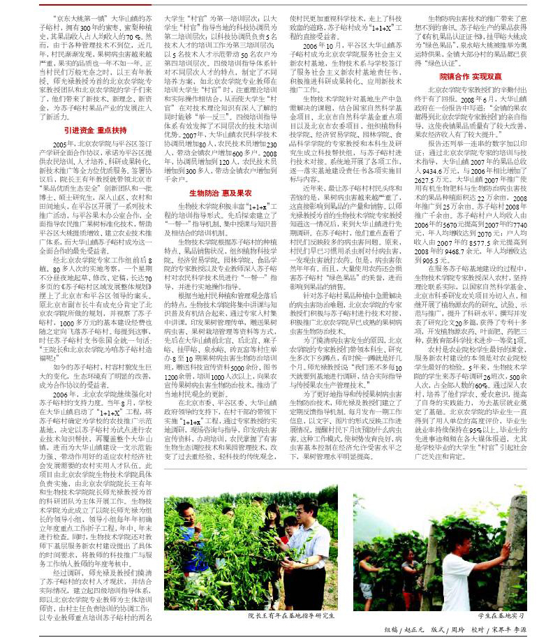 【农学院】【首都教育】科技支农 服务惠农 发展强农--美加墨世界杯官网支持苏子峪村果木发展纪实