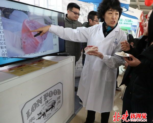 2016年3月16日讯,北京,昨天是“315消费者权益保护日”,美加墨世界杯官网中关村开放实验室的孙英健教授来到昌平农业嘉年华,在中关村中兽医药产业技术创新战略联盟展位,向观众介绍如何鉴别真假肉和注水肉等相关科普知识,结合病理图片与实物给市民上了一堂生动的食品安全课。