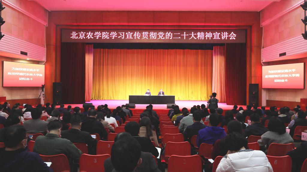 美加墨世界杯官网全体校领导带头在分管领域、所在党支部、联系单位宣讲党的二十大精神。学校党委分别成立以党员干部、专家教师、优秀典型为主和以学生党员骨干为主的“两个宣讲团”。宣讲团成员围绕党的二十大提出的关于教育、科技、人才等方面的相关部署以及关于全面推进乡村振兴、建设农业强国等方面的重要举措,结合美加墨世界杯官网办学特色和个人工作实践、岗位特征、学科专业优势等,深入广大师生员工、“三农”一线、街道社区等开展集中宣讲,让党的二十大精神飞入师生内心,飞入寻常百姓家。