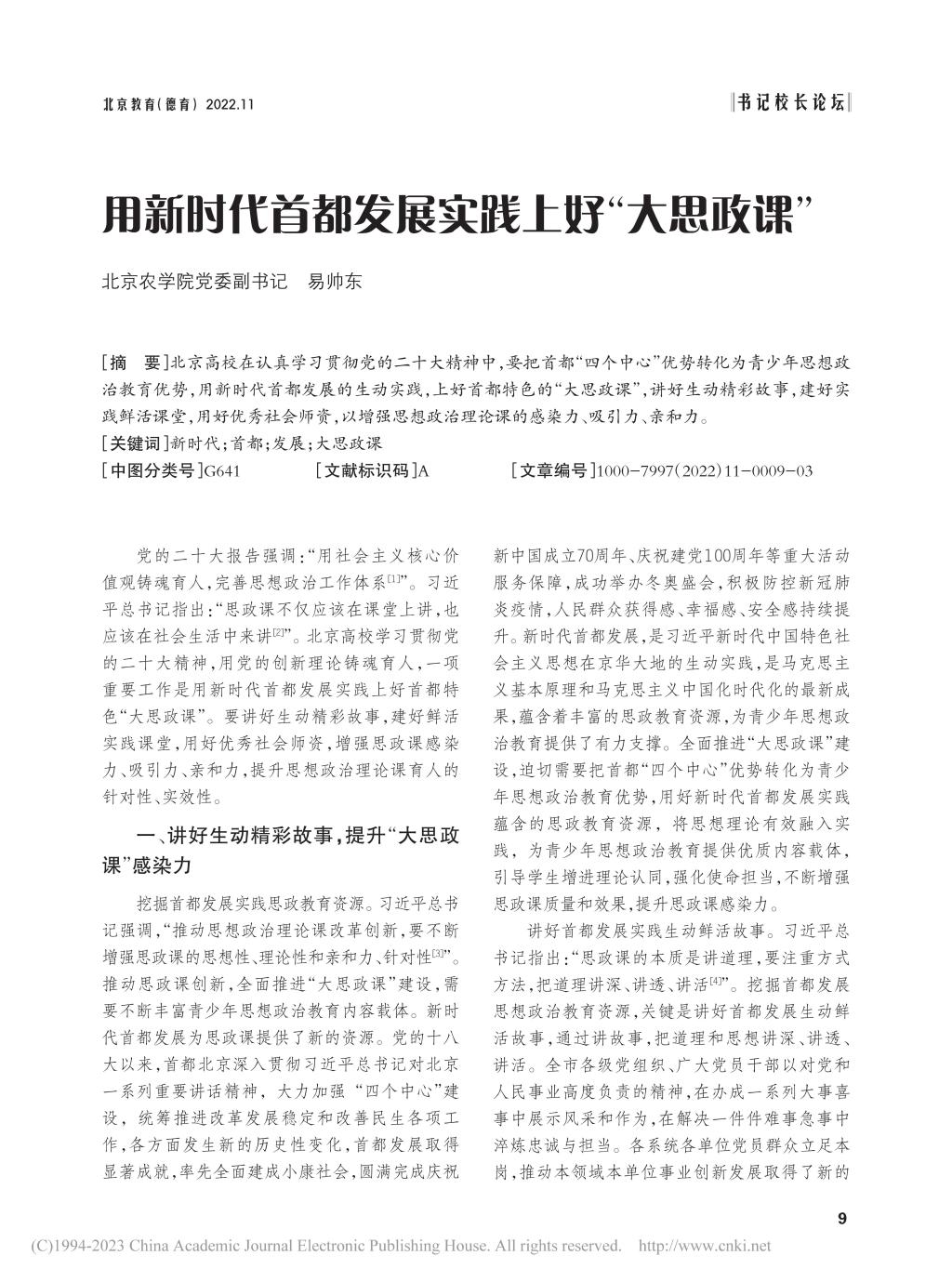【北京教育】【北京教育】用新时代首都发展实践上好“大思政课”