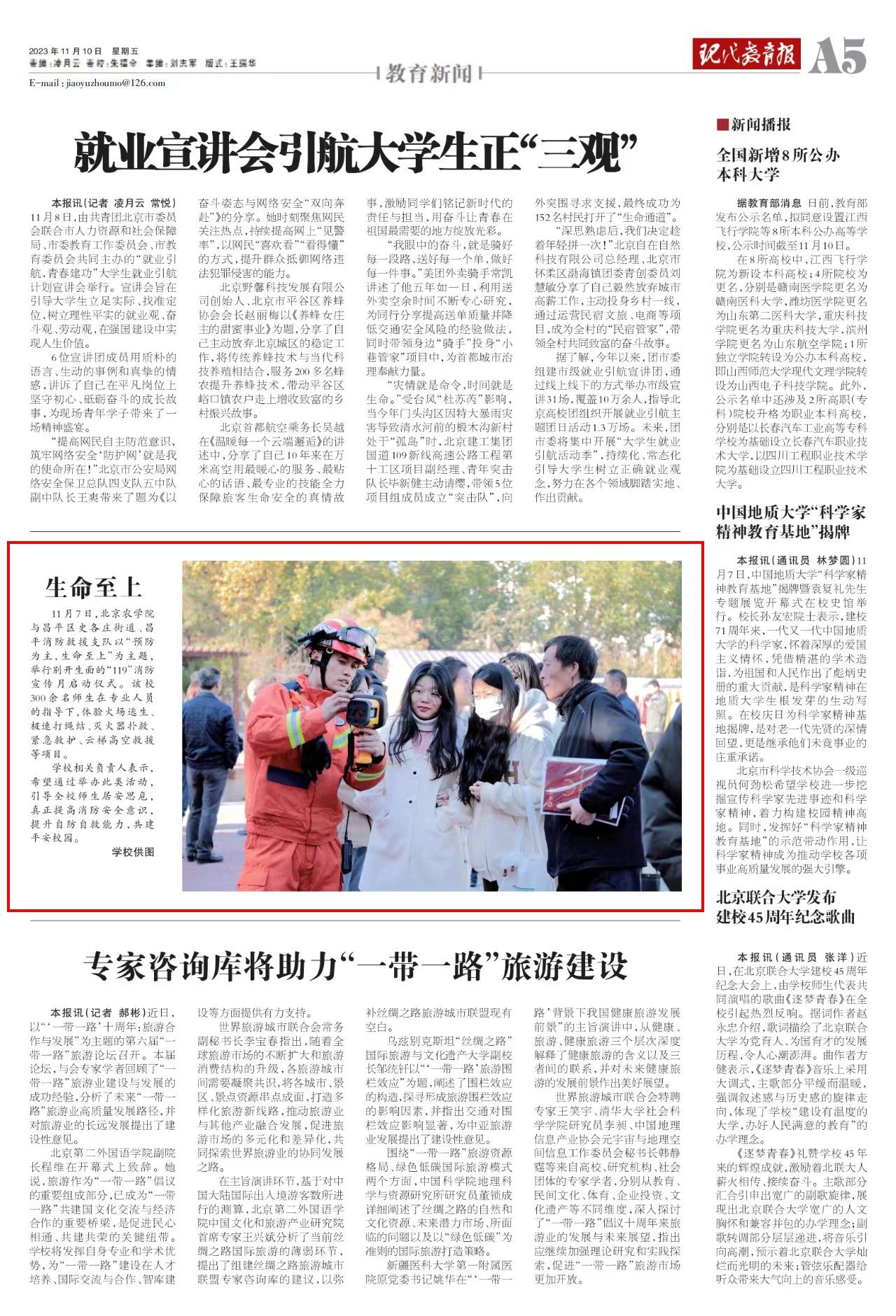 11月7日,美加墨世界杯官网与昌平区史各庄街道、昌平消防救援支队以“预防为主 生命至上”为主题,举行别开生面的“119”消防宣传月启动仪式。该校300余名师生在专业人员的指导下,体验火场逃生、极速打绳结、灭火器扑救、紧急救护、云梯高空救援等项目。
