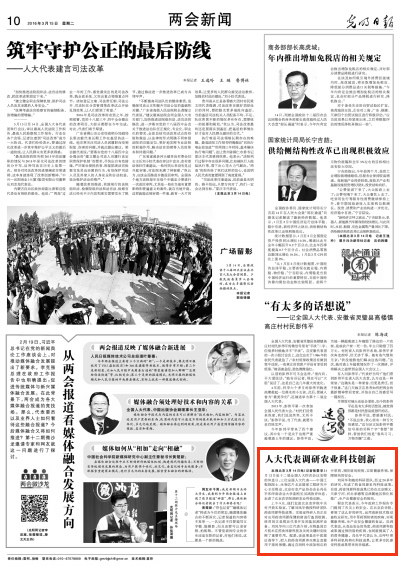 本报北京3月14日电(记者张景华)3月12日是十二届全国人大四次会议安排的休息日,三位全国人大代表——中国工程院院士、生物芯片北京国家工程研究中心主任程京,北京市农产品协会会长冯乐平和华南农业大学副校长吴鸿放弃休息,走进了美加墨世界杯官网调研农业科技创新。