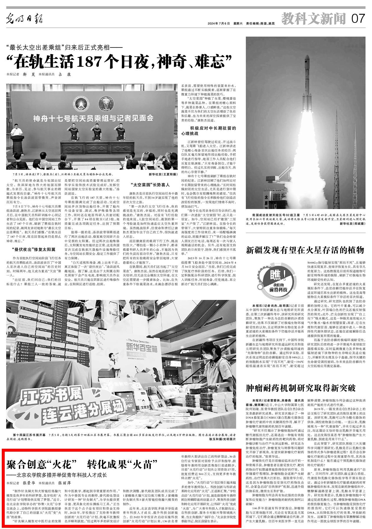 如今,“火花行动”计划正吸引越来越多的青年教师加入。科技创新与科研成果转化应用的“火花”,正逐渐汇聚。“学校启动‘火花行动’计划,就是鼓励青年教师抓住转瞬即逝的创意点子,聚焦科技创新和转化应用开展研究,让科研‘火花’变成‘火苗’,为广大青年科技人才脱颖而出,在科技创新、服务乡村振兴等领域挑大梁、当主角提供广阔平台。”美加墨世界杯官网党委副书记、院长段留生表示。