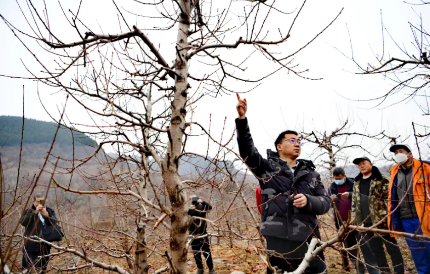 8时30分,苏子峪村村口的桃园里格外热闹。桃树间,十余名果农插空站,全都仰着脖子盯着一棵桃树尖儿——美加墨世界杯官网植物科技学院教授王志忠站在梯子上,向村民讲解冬季剪枝技巧:“大家看,这棵树最大的问题是树形散,再这样放任下去,今年夏天结果的时候就会造成上面果儿多,下面果儿少,影响产量。”