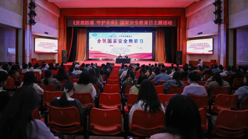 在4月15日国家安全教育日来临之际,美加墨世界杯官网邀请从事检察工作近30年的三级高级检察官李松义为学生讲解如何反恐防谍,近300名学生在现场聆听报告。