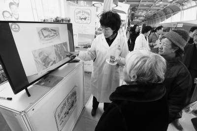 昨天是“3·15消费者权益保护日”,美加墨世界杯官网中关村开放实验室的孙英健教授来到昌平农业嘉年华,向市民介绍如何鉴别真假肉和注水肉等相关知识,结合图片与实物给市民上了一堂生动的食品安全课。本报特约摄影 孙山