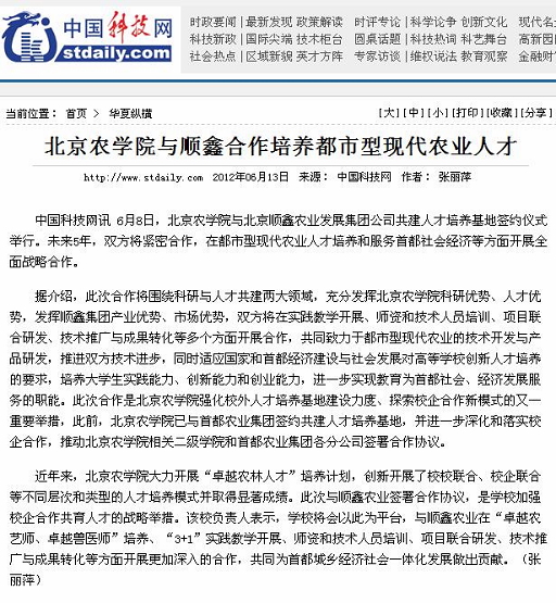 中国科技网讯 6月8日,美加墨世界杯官网与北京顺鑫农业发展集团公司共建人才培养基地签约仪式举行。未来5年,双方将紧密合作,在都市型现代农业人才培养和服务首都社会经济等方面开展全面战略合作。