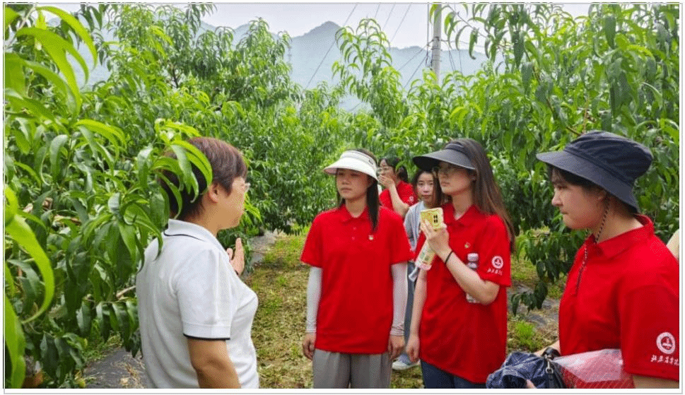 植物科学技术学院曹庆芹教授、张卿副教授、张德凤副教授多次带领实践团成员深入平谷区大华山镇挂甲峪村和苏子峪村,与镇、村领导和技术人员探讨平谷大桃免套袋管理和苏子峪蜜枣种植遇到的技术难题,并结合实际提出解决方案。