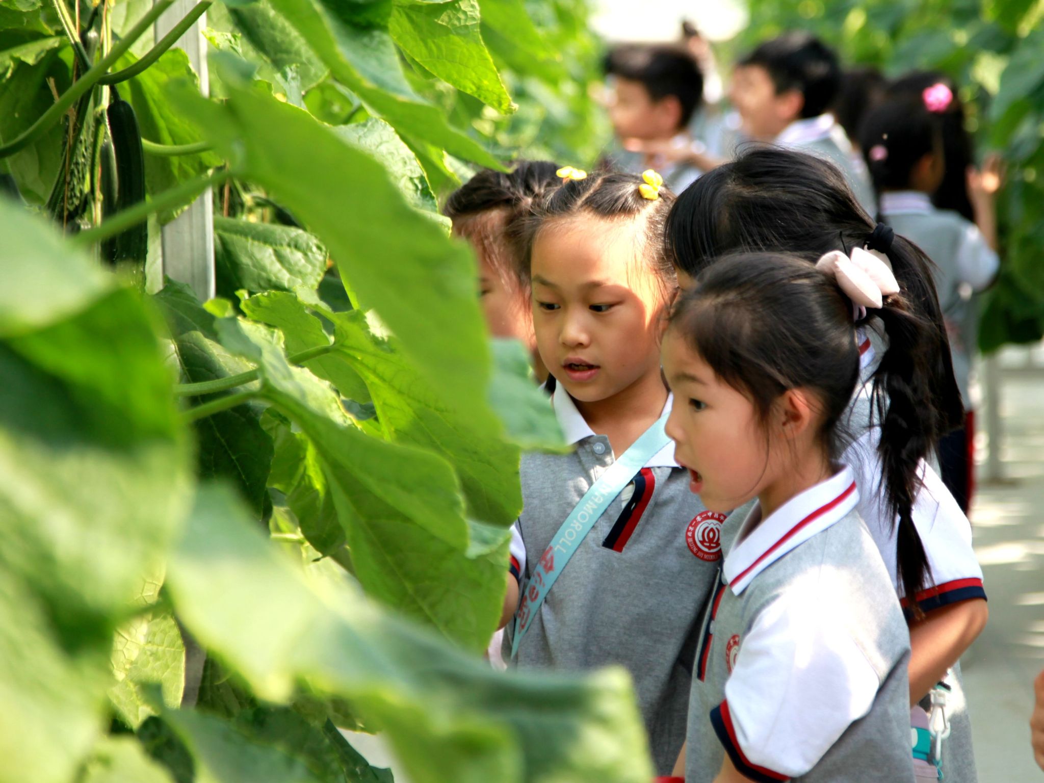 “你们看,温室里的机器人在走来走去!”小学生王梦杨兴奋地招呼小伙伴一起看。