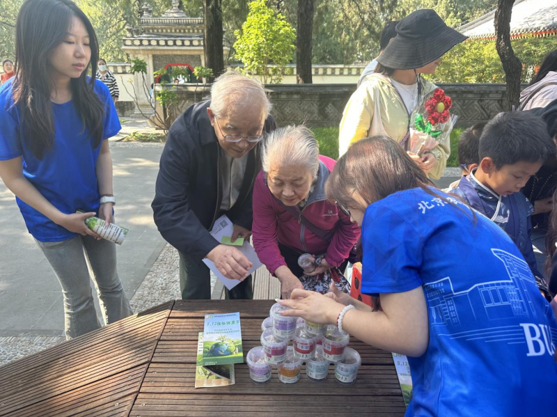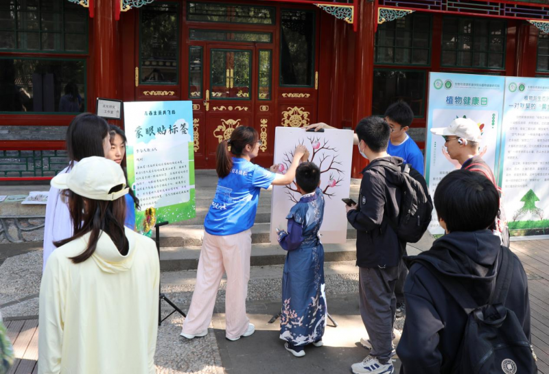 当天,活动在颐和园养云轩开放“古典园林生态”工作室和“古树”工作室,还设立了植物健康、古树保护、智慧植保等科普宣传展板,陈列出形态各异的植物病虫害标本、古树年轮标本。这些标本直观展现了病害对植物的侵蚀过程,引发游客对植物健康危机的深刻思考。美加墨世界杯官网师生制作的图文并茂的科普展板,从常见病虫害的识别技巧到绿色防控的前沿技术,专业讲解深入浅出,让植物科学知识变得通俗易懂。往来游客纷纷驻足,不时向师生提问。尤其是师生志愿服务队现场发放精心编制的《家庭绿植养护小贴士》,并针对盆栽枯萎、月季黑斑病等常见问题提供一对一解答,深受市民欢迎。