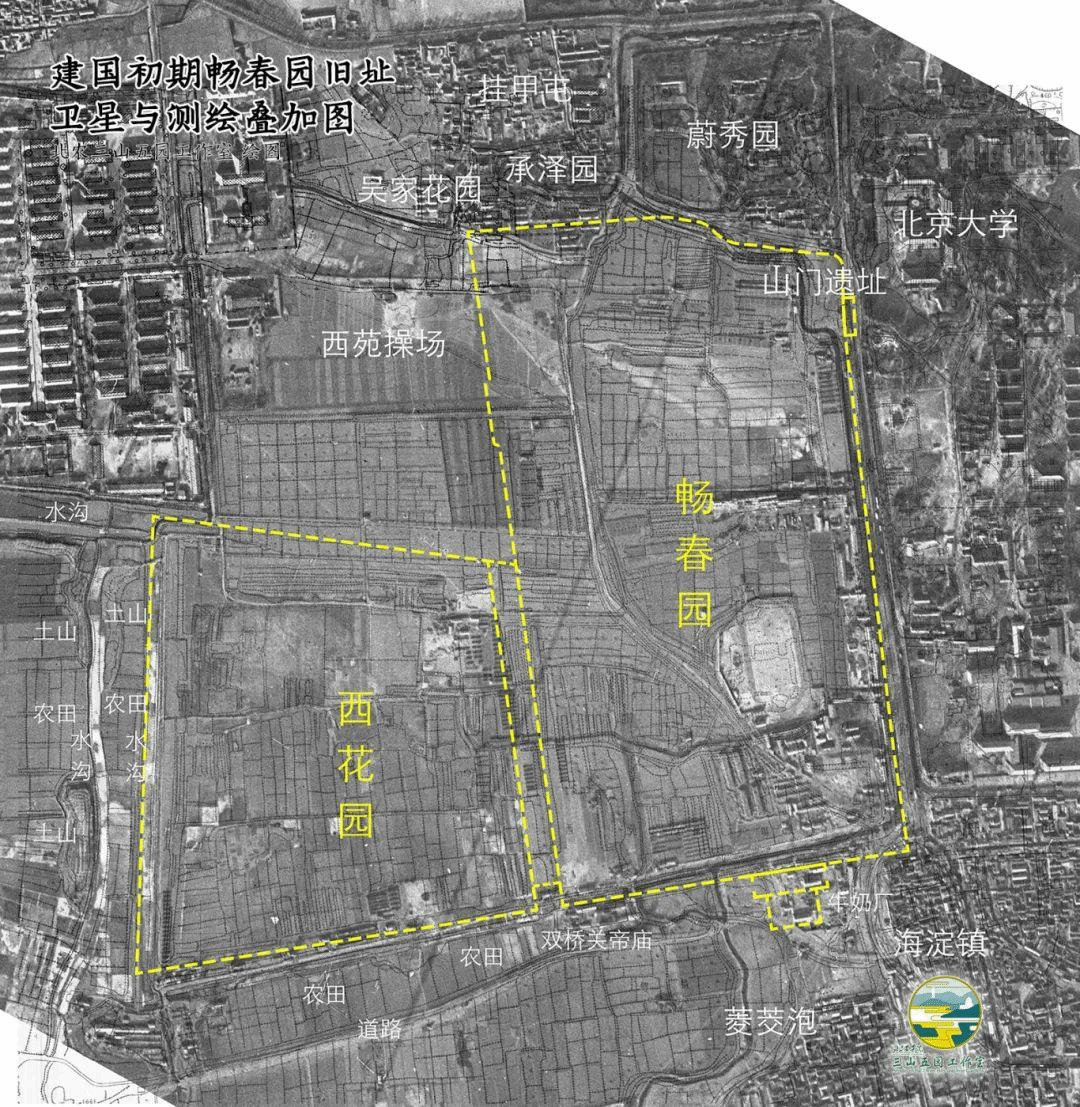 1967年畅春园锁眼卫星图与1957年测绘图叠加(朱强绘)
