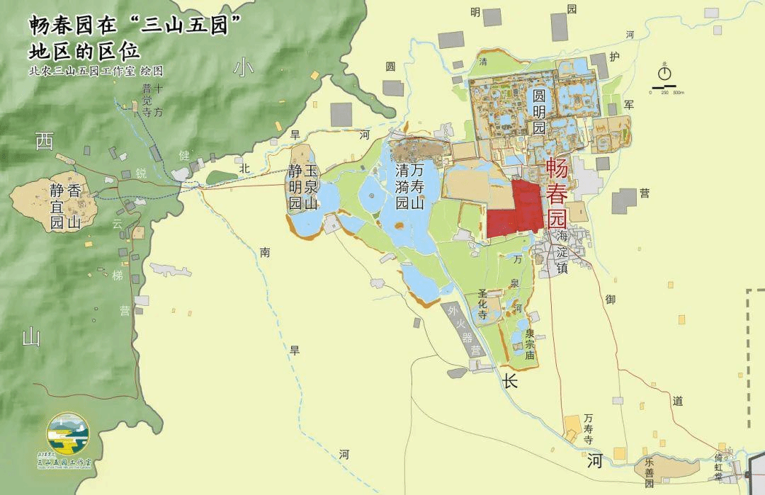 畅春园在“三山五园”地区的区位(朱强团队绘)