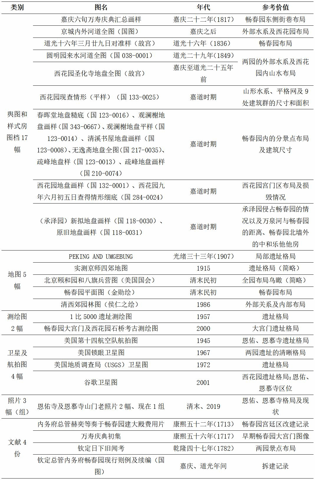 研究资料总览(引自朱强《从城市到山水田园:畅春园盛期空间复原新探》)
