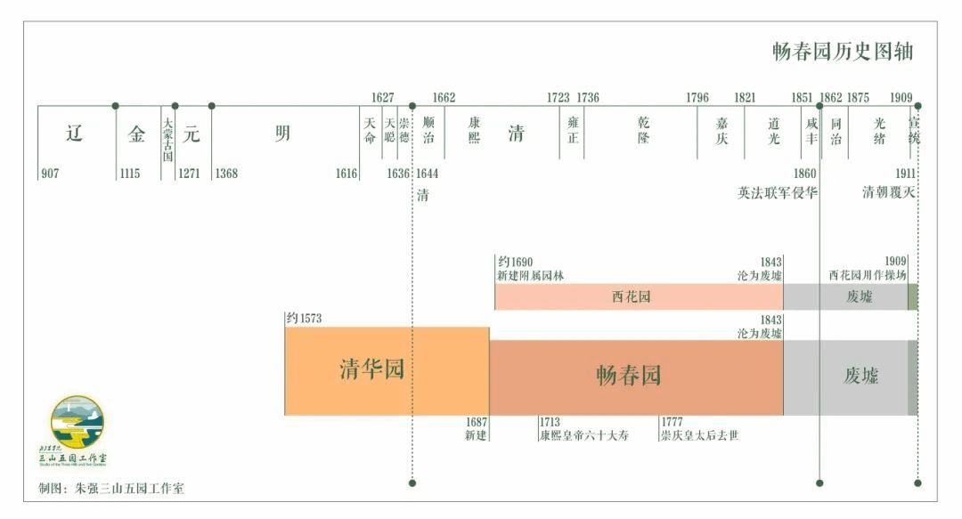 作为清朝首座在京城之外建成的皇家离宫,畅春园曾经得到过两任主人的青睐:康熙皇帝一年中平均有超过一百天的时间在畅春园驻跸,乾隆时期崇庆皇太后在此安享晚年。盛期的畅春园大约存续了120年之久,然而随着清朝的衰落,畅春园渐渐消逝于历史的长河中。嘉庆十二年(1807年)首次出现了皇帝下旨拆除畅春园殿宇的记录,咸丰十年(1860年)英法联军造成的浩劫更是摧毁了园中留存不多的几座建筑群。到20世纪初,畅春园已经是一片田野,改革开放后陆续建设起了现代化的城市建筑。畅春园的历史面貌被彻底改变。